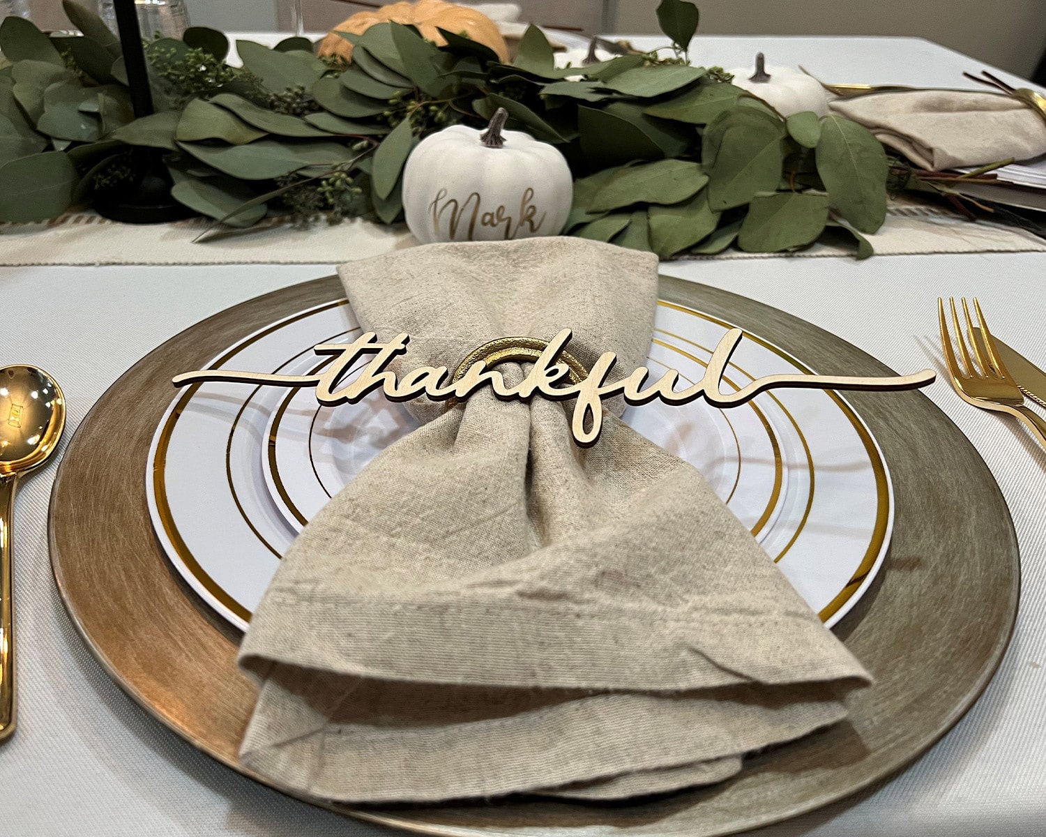 A thoughtful idea for Friendsgiving place cards is to write a short and sweet note about why you're thankful for each friend who is there to share the meal. You might even attach the note to a small bud vase at each setting, filled with a single seasonal bloom that doubles as a favor. By combining thoughtful details with the natural beauty of fall florals, your Friendsgiving table will not only look festive but also feel deeply personal, creating an environment where everyone is celebrated.