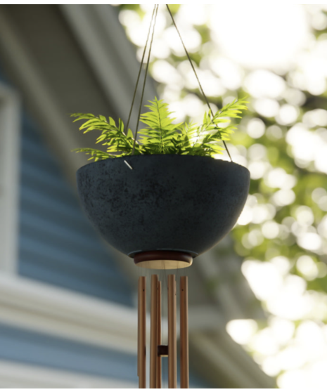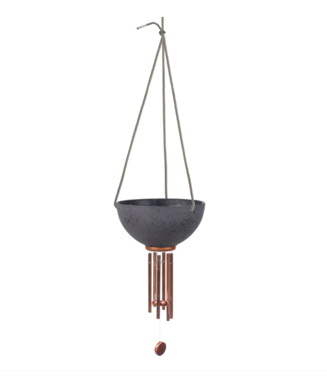 Crafted from an eco-friendly blend of recycled polypropylene resin and stone powder, this planter is both durable and lightweight, making it perfect for outdoor living. Pinewood and copper-toned aluminum chimes hang below the planter, creating soft, melodic sounds whenever the breeze passes through.