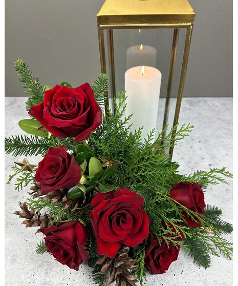 Thoughtfully crafted to last throughout the season, this lantern arrangement offers both beauty and glow—making it one of our most-loved holiday statement pieces.