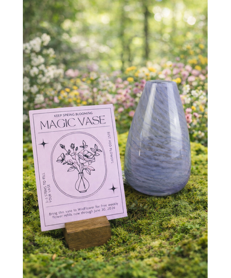 Give the gift that keeps blooming with our Giftable Magic Vase. This thoughtful floral experience includes a beautiful reusable vase and FREE weekly flower refills through June 30, 2026, making it a truly meaningful and lasting gift. Simply bring the vase into any WildFlower location and our designers will refresh it with 3–5 fresh seasonal stems, styled with care and creativity each visit.