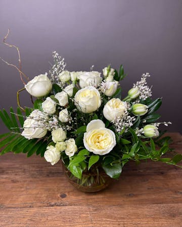 Like a breath of fresh ocean air, Isle of White offers a serene escape in floral form. This all-white vase arrangement features a luxurious mix of seasonal blooms—such as roses, hydrangeas, lilies, or snapdragons—paired with lush greenery for a clean, elegant look. Soothing and sophisticated, it’s perfect for creating a moment of peace and beauty, whether celebrating a milestone, offering comfort, or simply brightening someone’s day.