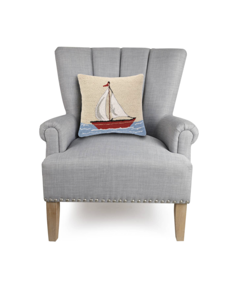 Bring relaxed coastal charm into any space with our Sailboat Hook Pillow. Featuring a timeless red sailboat gliding across soft blue waves, this hand-hooked pillow captures the easy elegance of seaside living. Its neutral background and classic nautical palette make it a versatile accent for couches, chairs, beds, or covered porches.